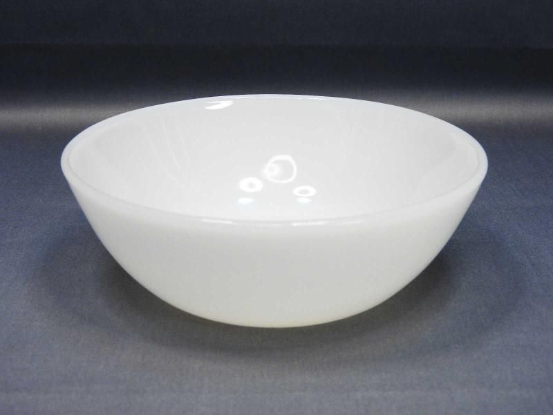 ミルクガラスの中央に、水色のタイル柄が散りばめられたレトロで可愛らしいボウルです。